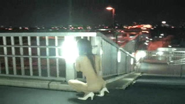 【野外露出】ゲリラ露出 ゆい☆ 夜の歩道橋で灯りに照らされながら全裸露出 動画。
